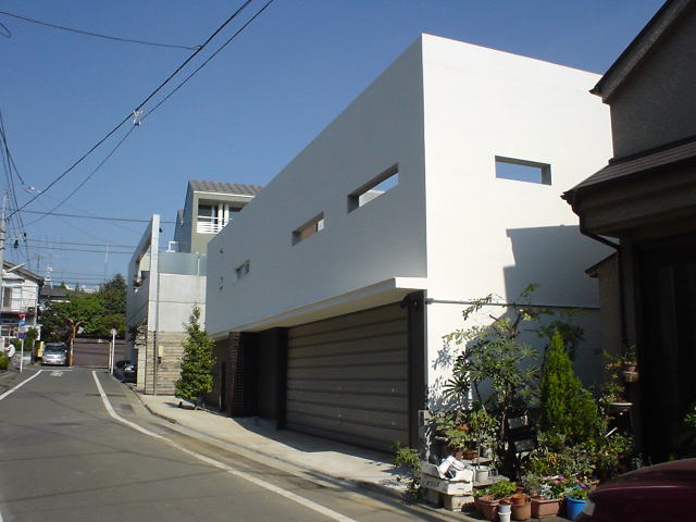 データ 所在地 東京都世田谷区 用途 専用住宅 階数 地上2階 構造 鉄筋コンクリート造 杭・基礎 直接基礎 ほぼ正方形の敷地形状で南側に中庭のあるL字型プランである.大きな吹抜空間をもつリビングが特徴.