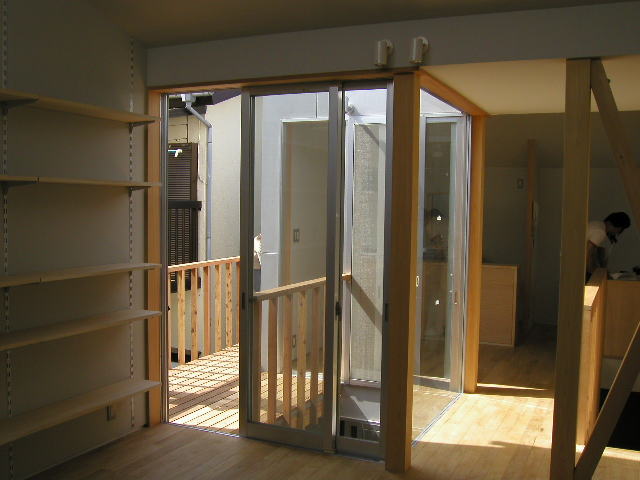 隣家が近接しているが,中庭を挟んで南北に分けハイサイドライトから差し込む採光でとても明るい.