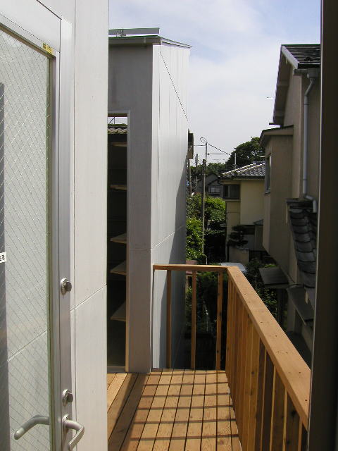 敷地は三つに分割された区画のいちばん奥にあり,接道2mで途中で狭まる超旗竿型.