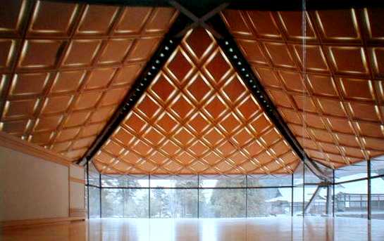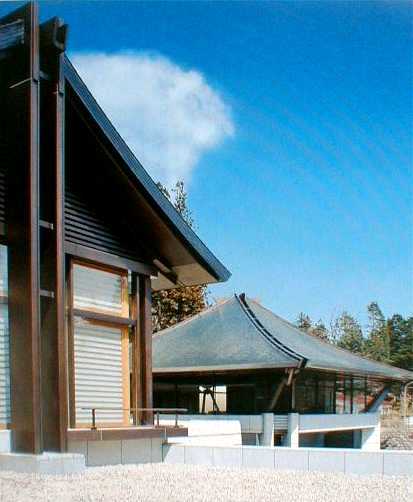 データ 所在地 栃木県日光市 面積 建築面積 2,589.28u 述床面積 2,953.63u 階数 地上2階 構造 鉄筋コンクリート造(1階) 鉄骨造(2階) 杭・基礎 直接基礎 客殿の構造はコーナー4箇所にある斜柱に屋根の重量が加わり、柱頭に張ったテンション材の張力で安定するサスペンション構造。内部の仕上げには日光杉を使用している。