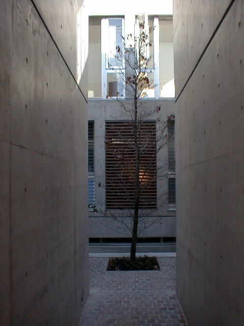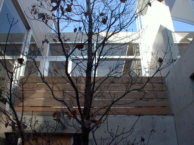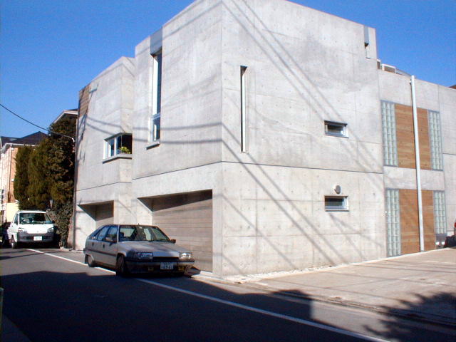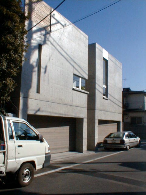 データ 所在地 東京都世田谷区 用途 専用住宅 階数 地下1階 地上3階 構造 鉄筋コンクリート造 杭・基礎 直接基礎 閑静な住宅街に建つコンクリート造二世帯住宅である。正面から見ても明確に二世帯であることが窺える。構造的には、正面道路側がアプローチやガレージの出入り口であるため、耐力壁が設けられないので、この部分を柱・梁フレームにより補強している。中庭の空間表現が見事な作品である。