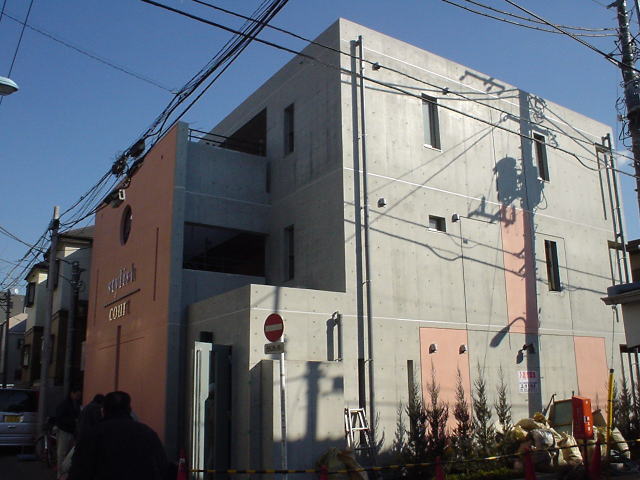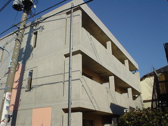 データ 所在地 東京都杉並区 用途 共同住宅 階数 地上3階 構造 鉄筋コンクリート造 杭・基礎 直接べた基礎 いわゆるデザイナーズマンション.コンクリート打ち放しの外壁面には光触媒塗料を塗布し,コンクリートの中性化を防ぐ処理を施している.やや照りがある表面.