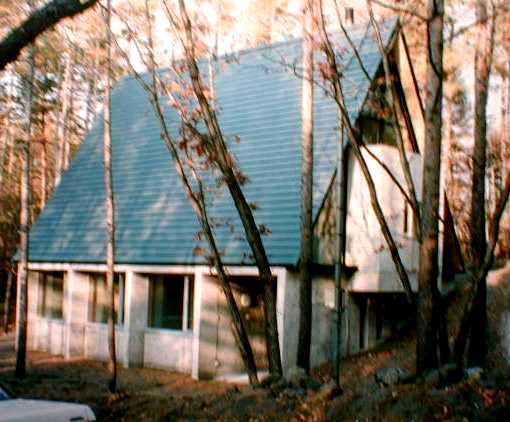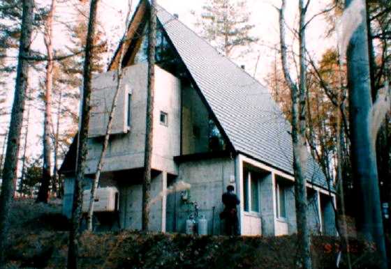 独立して最初の仕事となった建物で、1階が鉄筋コンクリート造の個室で2階が鉄骨造のパブリックスペースになっている。この敷地は国立公園内にあり、建物の形態や外観の色使いに細かい規制があった。日比生氏は外観はアースカラーで落ち着いた表情であるのに対し内部には原色を使って変化を出している。室内に構造材を表現したいとの要求から、鋼管を構造材として使用した。屋根の仕上げをするのに鋼管では取り合いが良くない。そこで屋根面を平らにする為に鋼管にCT鋼を溶接した複合部材としている。天井仕上げを構造材の上に貼る事で外部から見える屋根の薄さが表現できた。